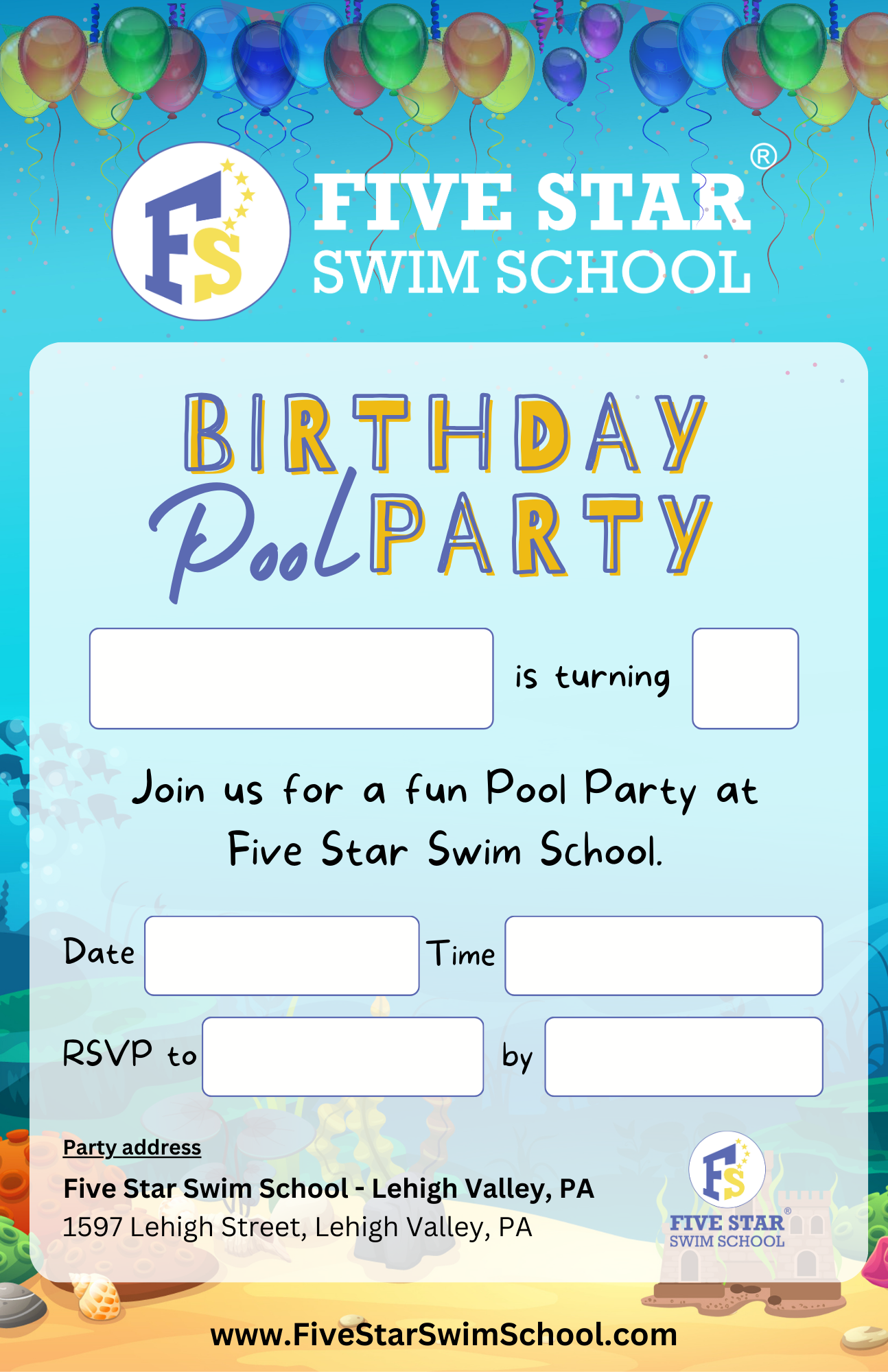 Five Star Swim School is the place to make your child's Birthday Party unforgettable!